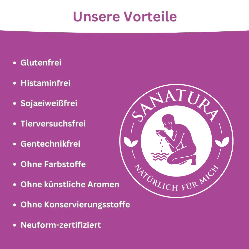 Unter der Marke Sanatura haben wir alle Produkte vereint, die auf Basis natürlicher Vitalstoffe helfen, wichtige Funktionen des Körpers zu stärken und so Gesundheit und Wohlbefinden zu unterstützen. Alle Produkte enthalten ausschließlich hochwertige, möglichst naturbelassene pflanzliche Zutaten, deren Qualität in internen und externen Laboren ständig kontrolliert wird.