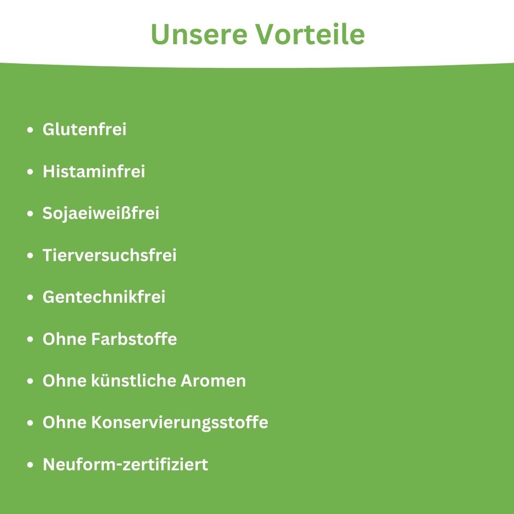 Nahrungsergänzungsmittel sollten nicht als Ersatz für eine ausgewogene und abwechslungsreiche Ernährung sowie für ein gesunde Lebensweise verwendet werden. Die empfohlene tägliche Verzehrsmenge nicht überschreiten. Außerhalb der Reichweite von kleinen Kindern lagern.
